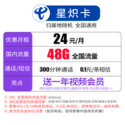 月租24元=18G全国通用流量+30G定向流量+300分钟通话+来电显示+激活首月送30元话费