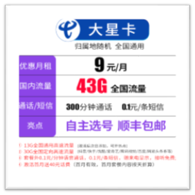 (三) 大星卡(月租9元,自主选号,顺丰包邮)