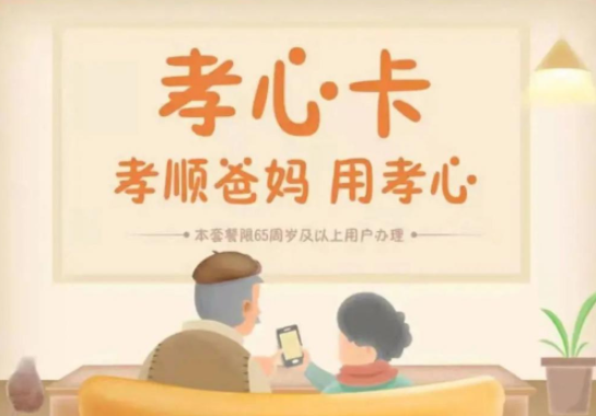 孝心卡是中国电信为 65 周岁及以上用户推出的新套餐。官方称,流量、语音一个都不少,资费还优惠,特别适合对上网需求不高的老年用户办理。