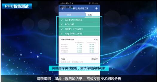 为了提升网络质量评测效率,广东移动通过使用华为PHU智能测试工具,简化测试工作,让工程师把更多的精力聚焦于网络质量提升调整上。PHU是新一代基于华为智能手机和云端协同完成便携式无线网络测试软件。通过将测试软件和手机结合,可直接用手机来采集无线网络空中接口测试数据、评估网络性能、指导网络的优化调整。