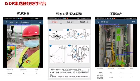 在现场准备阶段,通过AI识别技术保障现场作业人员的资质和安全装备复合要求,保障安全生产,实现安全事故“0”发生;在设备安装与调测阶段,将专家经验固化到工具中,通过对作业人员进行图形/视频指导,标准化操作流程,一方面降低了对于作业人员的经验要求,另一方面通过标准化操作提升了交付质量,业务中断时长减少了40%;在质量验收阶段,现场人员可以通过手机对安装后的设备进行拍照或者视频,秒级即可显示结果,并给出改进建议。